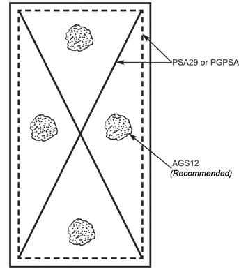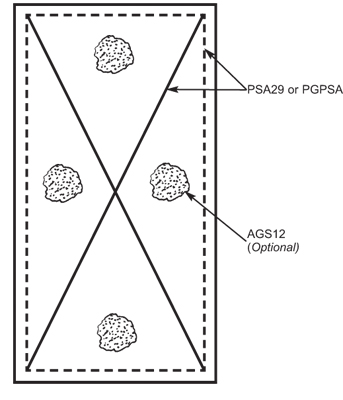 Apply a 6″ circle of Spray Adhesive (AGS12) in each of the quadrants (as shown in diagram).
